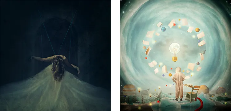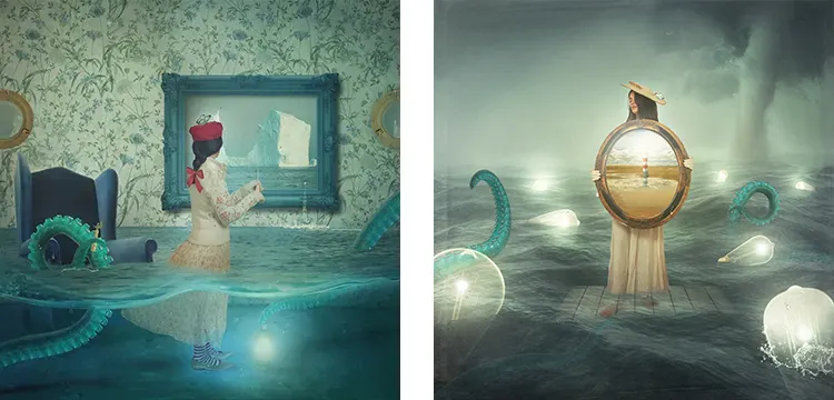 Villanueva’s distinctive artistic style combines surreal photography with the poetic essence of painting. Her works often incorporate metaphorical imagery, blending the tangible with the ethereal to explore themes of beauty, loss, and the subconscious. Inspired by magical realism, her photographs blur reality’s edges, inviting viewers into dreamlike realms where vulnerability and memory intertwine.