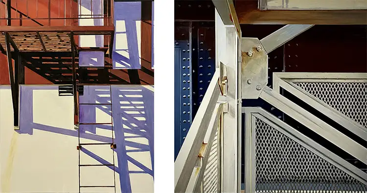 During his formative years, Allan would often find himself engrossed in the intricate patterns of ceiling plaster, seeking captivating shapes amidst its layers. This practice has evolved with time; now, armed with a camera, Gorman captures abstract nuances in urban landscapes. Though some categorize him as a photo-realist due to his penchant for painting from photographs, he perceives his craft with a different lens. In Gorman’s view, he constructs abstract compositions masquerading as realism, with abstract components becoming more prominent as he progresses in his artistic endeavor.