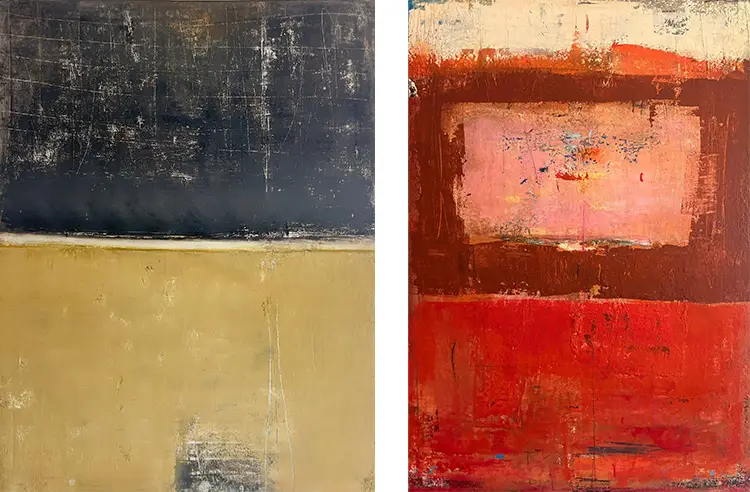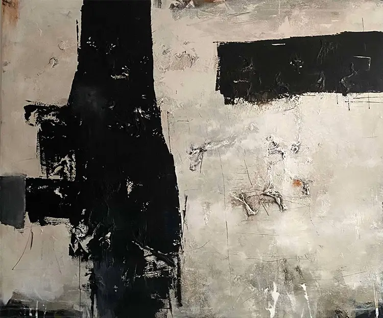 Her canvases often exist at the intersection of abstract expressionism and minimalism, guided not by planning but by impulse and emotional necessity. She engages in an intimate dialogue with her materials, whether they be oil, cold wax, acrylics, or unconventional tools like branches and wire. The result is a collection of emotionally resonant works where texture and restrained color speak volumes. Each surface is a visual poem, textured with tactile energy and subtle layers that invite the eye to linger. The dynamic, physical quality of her pieces stems from a process that frequently involves painting directly with her hands, allowing her fingerprints to remain as quiet testaments to her presence.
