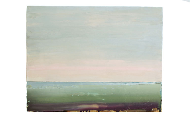 The beeswax, being a little transparent, lends an ethereal quality to the color layers, which appears to radiate from within. This quality makes it a perfect medium to portray the intangible world. To express the captivating act of painting itself, she combines this technique with oil paint.