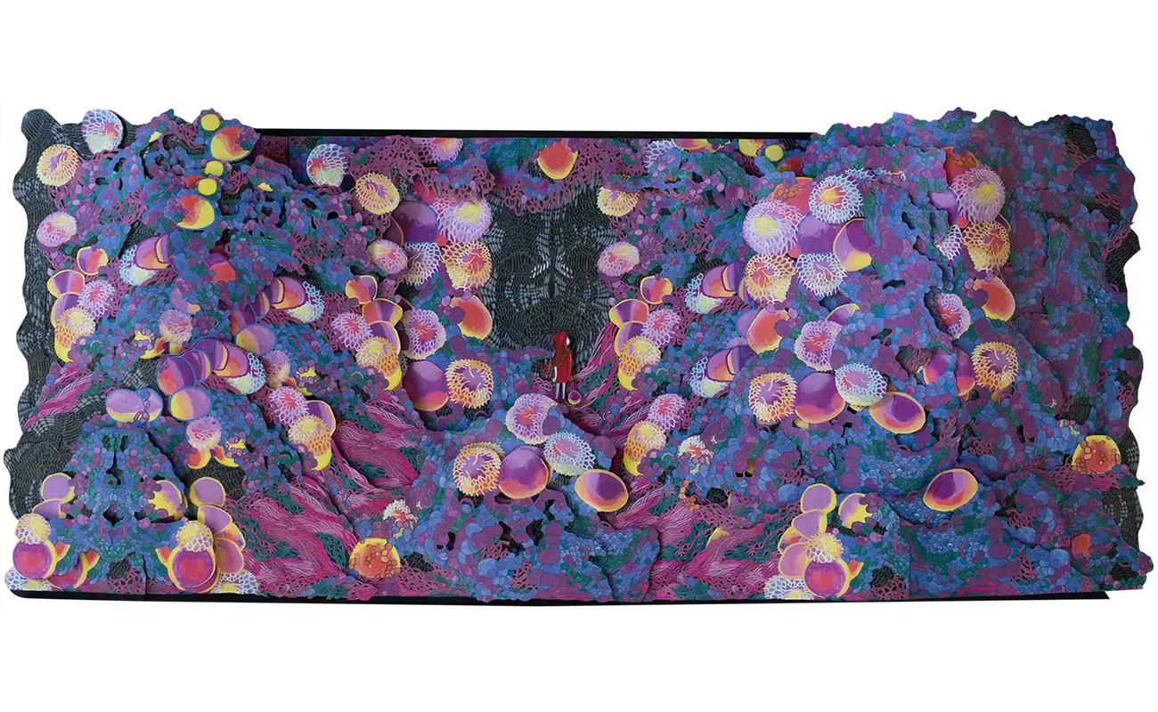 Themes of interdependence and storytelling pervade her work. A recurring figure in her compositions is “Ann in a red cap,” a small postman navigating surreal, cellular terrains. This character operates as a symbol of human empathy within scientific isolation—delivering messages across visual ecosystems that seem simultaneously alien and familiar. Through this motif, she blurs the line between science and sentiment, exploring how meaning is carried across both space and silence.