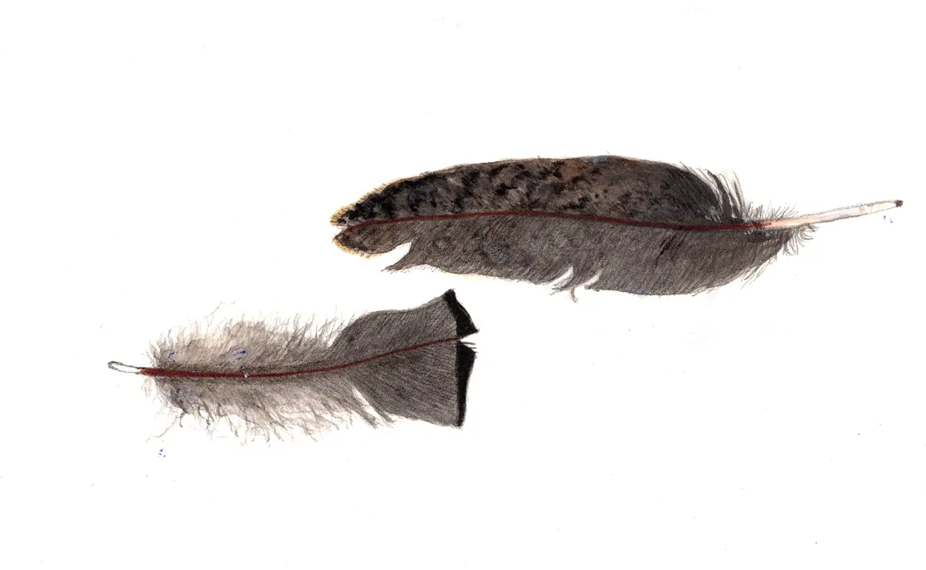 Anne Kinsey Careatti’s work immediately establishes a visual language rooted in delicacy and disturbance, where finely controlled watercolor surfaces carry narratives of environmental tension and human vulnerability. Across the presented images, the artist demonstrates a commitment to material sensitivity, particularly in her handling of pigment flow and line. The compositions oscillate between intimacy and expansiveness, often isolating subjects within open space or framing them within contained pictorial borders. This approach heightens the viewer’s awareness of each element, whether it is the intricate construction of a bird’s nest interwoven with synthetic debris or the suspended stillness of marine life drifting through layered washes of blue. Her linework, at times incised into the paper, introduces a physical dimension that reinforces the themes of abrasion and endurance embedded within the imagery.