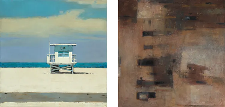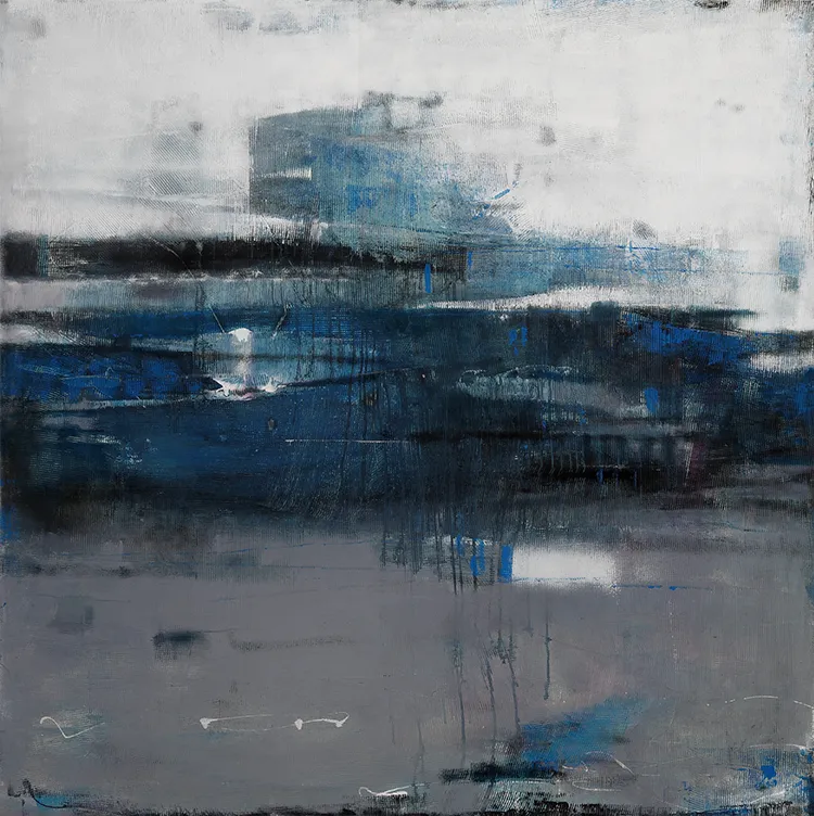 His unique style dynamically blends abstract and representational elements, creating a visual dialogue that is both captivating and thought-provoking. Kravchenko’s command of color and composition evokes a sense of serene melancholy and contemplative solitude. In his abstract works, he employs a rich, textural approach, layering surfaces with muted tones and vibrant pops of color to achieve depth and complexity. This balance of chaos and order, with gestural brushstrokes and subtle variations in tone and texture, is a hallmark of his abstract pieces. Conversely, his representational works, such as landscapes and architectural scenes, are minimalist yet evocative, portraying space and light with a striking use of shadow.