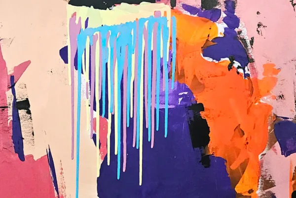 Brooke Hirsheimer‘s artistic voyage commenced unexpectedly, sparked by the majestic Swiss Alps’ grandeur. In 2017, during a transformative journey, she found herself compelled to capture the essence of her experience. It was then that “Little Dude,” a tiny ink figure, emerged onto her canvas as a playful symbol of our collective smallness against nature’s vast canvases. Brooke’s artistic progression did not halt with these initial sketches. She began to infuse her work with rich, textured swipes of paint, breathing life into her creations. This technique cultivated whimsical, abstract landscapes—a place where Little Dude could roam and belong. By 2020, Hirsheimer’s landscapes had blossomed further, acquiring greater dimensionality and character, a testament to her evolving skill set and the unfolding of her inner narrative through art.