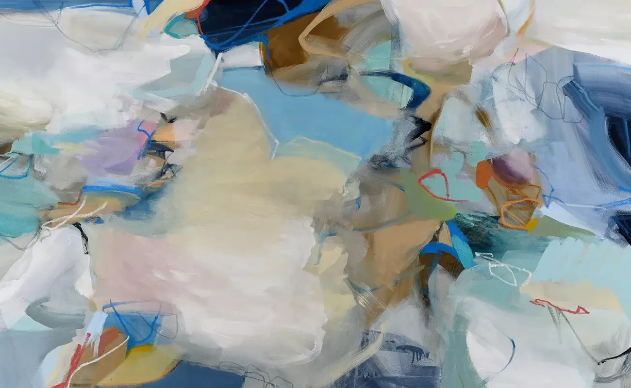 Nature is not just a theme in Cat Tesla’s work; it is a language she speaks fluently through color, form, and texture. Her paintings do not depict nature in a literal sense, but instead attempt to translate its emotional and spiritual essence. Tesla’s “Exhale Series,” for example, captures a softened abstraction of organic landscapes, while her “Feeling Good Series” departs entirely from recognizable forms, focusing instead on mood and motion derived from natural inspiration. Her process begins not with a fixed image in mind, but with what she refers to as an “automatic drawing”—a freeform sketch in graphite and wax crayon—through which unconscious energies guide the composition before being refined through layers of acrylics, oils, and mixed media. This process mirrors the unpredictability of the natural world, where spontaneity and order coexist.
