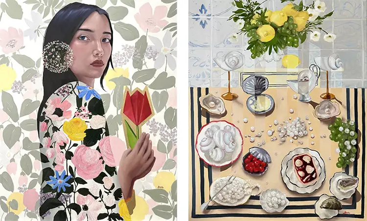Each canvas she creates becomes a nuanced exploration of human emotion, delivered through an expressive visual language that favors vibrancy and balance. Whether depicting fruit in a sunlit kitchen or the quiet posture of a figure deep in thought, her paintings communicate a sense of presence and invitation. While her formal education focused on environmental design, this training has clearly influenced her spatial sensibilities—every composition reveals an understanding of how color, line, and structure interact to create emotional resonance. Her practice thrives on this intersection between academic discipline and instinctive freedom, producing work that is both grounded and open-ended.