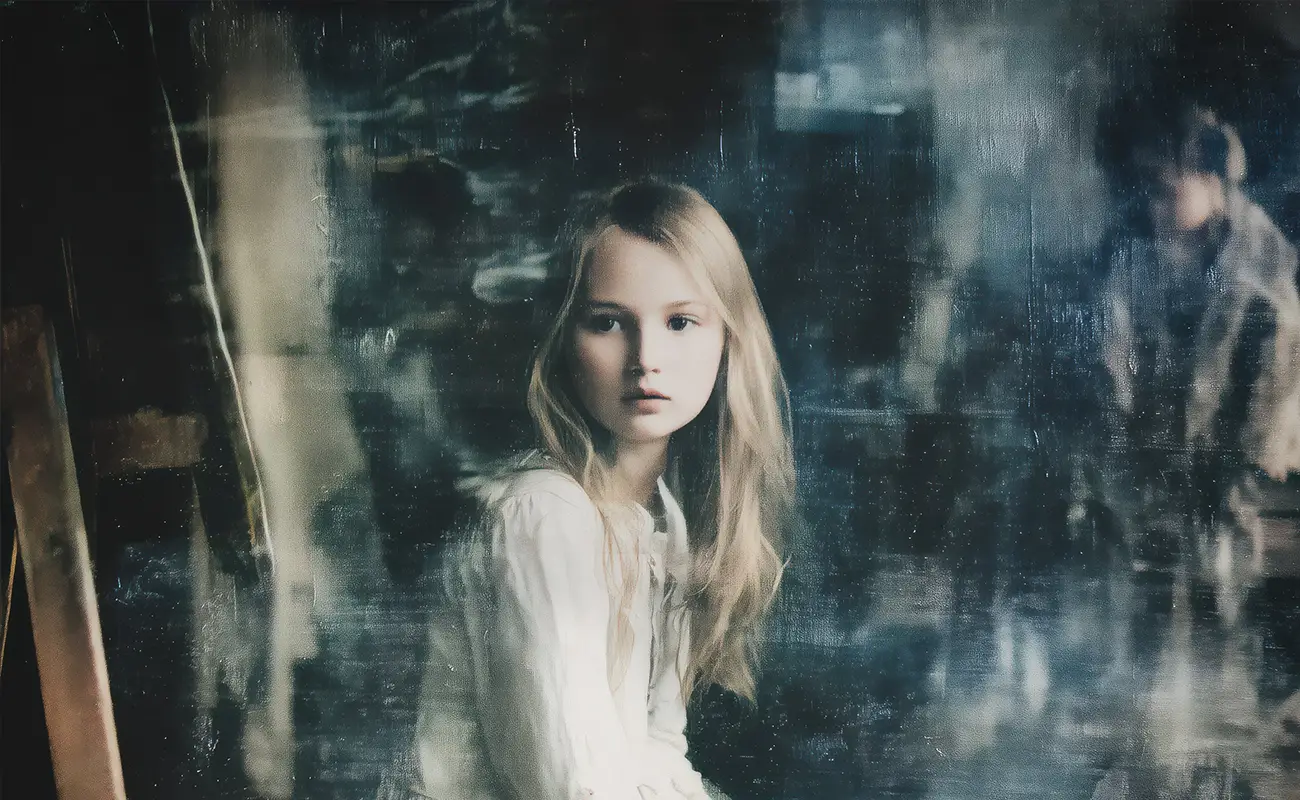 One of the most meaningful works in Miller’s practice is Stillness Between Rooms, an image depicting a solitary young figure within a deteriorating interior. The scene exists between categories, functioning as both portrait and apparition. Presence and disappearance coexist, creating a visual tension that resists resolution. The ambiguity is intentional, allowing the figure to operate less as an individual and more as a psychological vessel. What matters is not who the figure is, but what the image carries emotionally, a sense of memory recalled too late or too often.