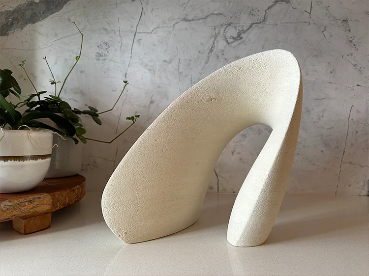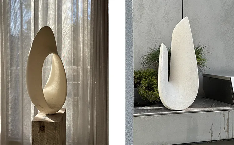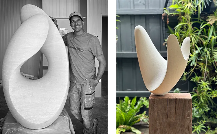 Dominic’s choice of medium is often serendipitous, as exemplified by his discovery of limestone carving at the Melbourne International Flower and Garden Show. The soft, malleable nature of limestone allowed him to quickly explore and develop his ideas, fostering a rapid evolution of his artistic style. As he continues to experiment with different materials, including bronze, stone, steel, and polymer, he remains open to new possibilities and techniques. His industrial design background provides him with the technical skills to digitize his art, further expanding his creative horizons.