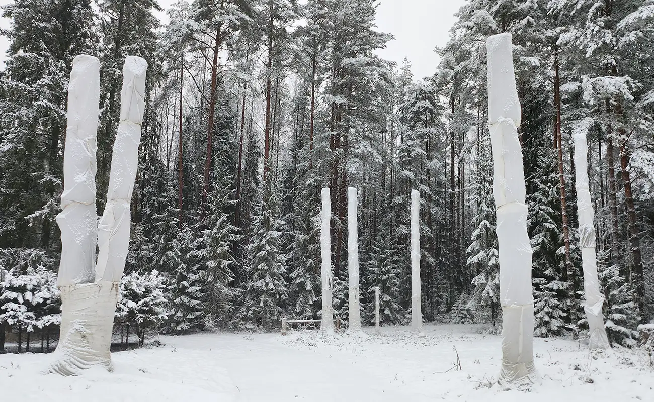 This project was part of the group exhibition Waitiling, a term combining “waiting” and “wondering,” which questioned the nature of suspended futures. For Eleanora, the work explored how collective memory interacts with public space, asking whether waiting can become a permanent state and how communities navigate change that arrives both suddenly and incrementally. The act of wrapping the pillars served as both an offering and a question: how do we honour what remains while remaining open to what is yet to come?