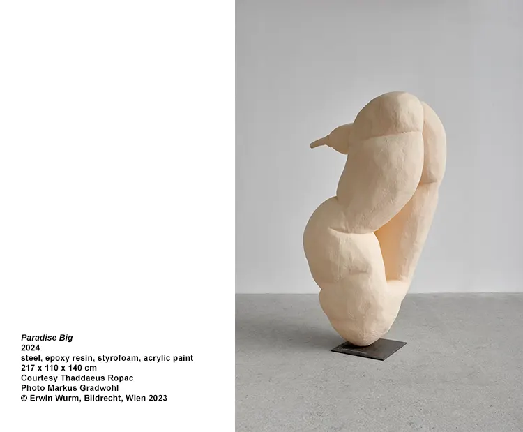 Wurm primarily utilizes film and photography as integral extensions of his sculptural practice. These mediums are pivotal in capturing the essence of his ephemeral sculptures, ensuring that their fleeting existence is preserved and transformed into enduring works of art. In Wurm’s hands, film and photography transcend their traditional roles, becoming sculptural works in their own right. This approach allows him to explore new dimensions of expression and engagement, effectively merging sculpture with time-based media. Through this multidisciplinary fusion, Wurm adeptly blurs the boundaries between distinct art forms, creating a complex and richly layered artistic experience. This method reinforces the impermanent nature of his sculptures while simultaneously offering a permanent and thought-provoking representation of his artistic vision.