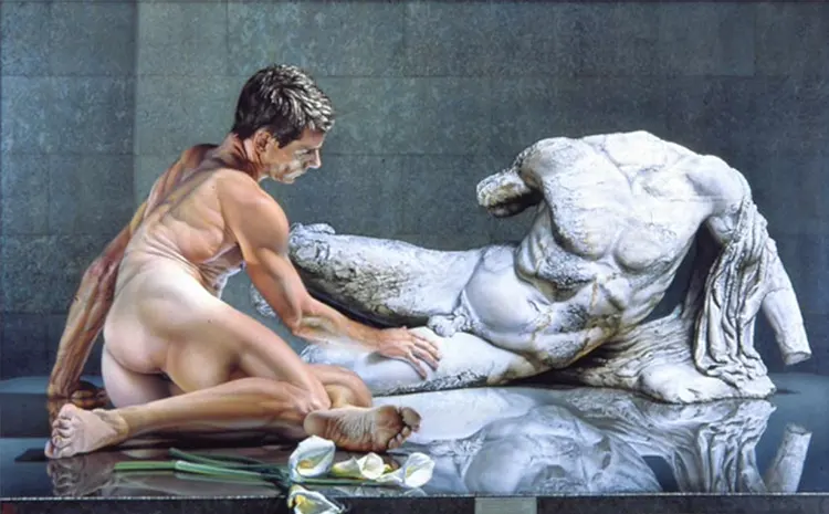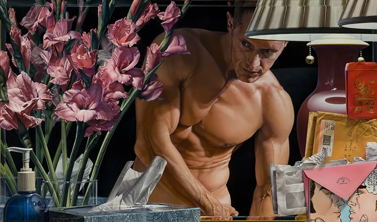 Gerard’s artistic style, which he classifies as Superrealism, is a blend of meticulous planning and creative spontaneity. He doesn’t simply replicate photographs; he transforms them into intricate compositions that communicate deeper meanings. Huber begins with a conceptual vision, gathering separate photographic elements that align with his thematic intentions. These elements are then projected and rearranged on a panel, where Huber’s imagination and skill converge to bring his vision to life. His approach to Superrealism goes beyond technical replication; it involves a deliberate manipulation of reality, where he adjusts colors, lighting, and details to match his artistic intent.