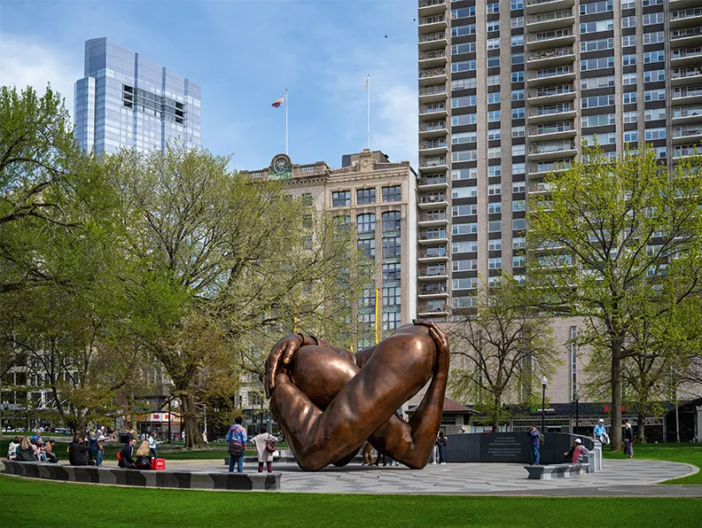 The Embrace, 2023. Bronze. 20-foot tall, 32-foot diameter. Photography Credit: Wyatt Gallery