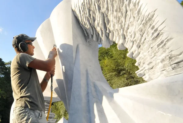 His process integrates both advanced technology and traditional handcrafting techniques. Each sculpture begins as a digital model, where he experiments with algorithmic patterns and structural arrangements. Once finalized, the design is 3D-printed in segments, which are then individually sanded and polished to ensure seamless integration. The final steps involve meticulous assembly and the application of custom color gradients, enhancing the sculpture’s sense of fluidity and depth. This hybrid approach—where cutting-edge digital tools coexist with the tactile precision of hand-finishing—results in artworks that feel both futuristic and deeply rooted in the physical world.
