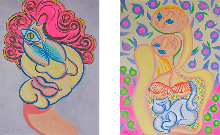 この非階層的な視覚的論理は、彼の現在の作品群を通して繰り返されている。Hello, It’s Me No.03』や『Growth and Companion』では、有機体と環境、人物と背景の区別が崩れ始める。それぞれの断片、目、手足、葉は、概念的なノードとして出現することができる。この開放性は、混沌を生み出すのではなく、むしろ絶えず変化し続ける視覚的な場を生み出す。樹木のような」視覚的ヒエラルキー構造を否定することで、李朱は絵画の各部分が等しい可能性をもって振動することを可能にし、生命、真の生命は支配ではなく、相互関係によって生み出されると主張している。