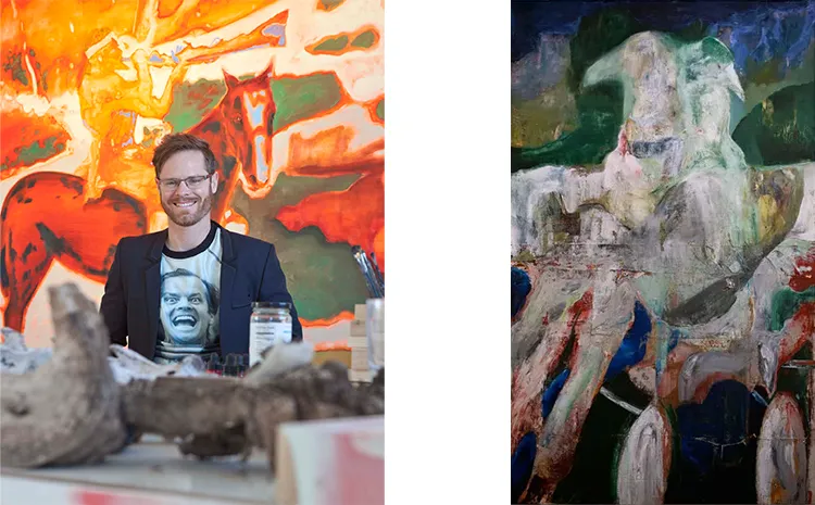 Joshua Hagler‘s journey into the art world began with a degree in graphic design from the University of Arizona. However, his passion for painting and his desire to explore deeper philosophical questions soon took precedence. Hagler’s early interest centered on how cultural and religious identities shape our perception of the world and ourselves. This curiosity became the foundation of his artistic career, driving him to create works that delve into the complexities of human existence and belief systems.
