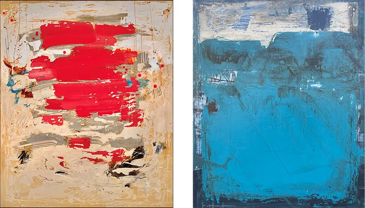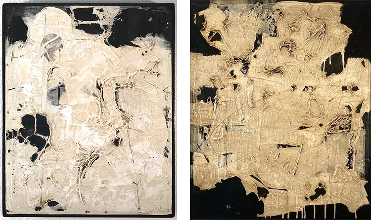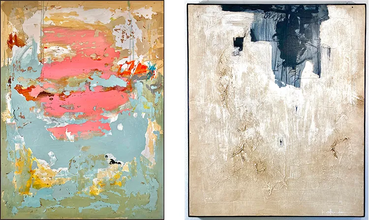 Gulbrandson’s artistic technique is as unique as his journey. Each piece starts with a handcrafted wooden canvas, emphasizing the personal touch that marks all his works. He builds up layers using wax and various mediums, then employs a torch and carving tools to shape and reveal the underlying textures and colors. This distinctive method allows unexpected visual elements to emerge, creating a dynamic interplay on the canvas that captivates and engages. His approach is not merely about applying paint; it’s about sculpting and manipulating materials to uncover the hidden beauty beneath.