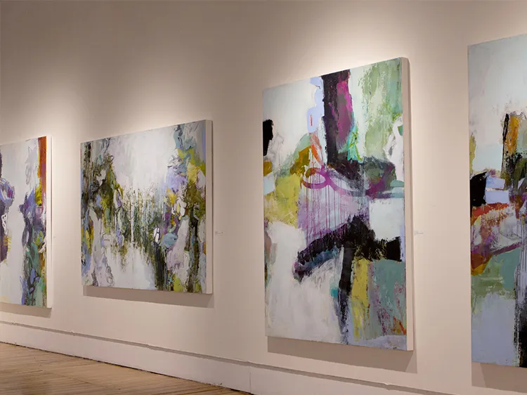 Laurie Skantzos’s work is marked by a wide range of emotional expressions, from playful and bright compositions to subdued and monochromatic pieces. The choice of color palette for each piece is deeply influenced by her emotional state and the themes she is exploring at the time. Vibrant colors are often used to evoke feelings of joy and energy, while more subdued tones reflect introspection and contemplation. This emotional versatility is a testament to her ability to communicate complex feelings through visual means.