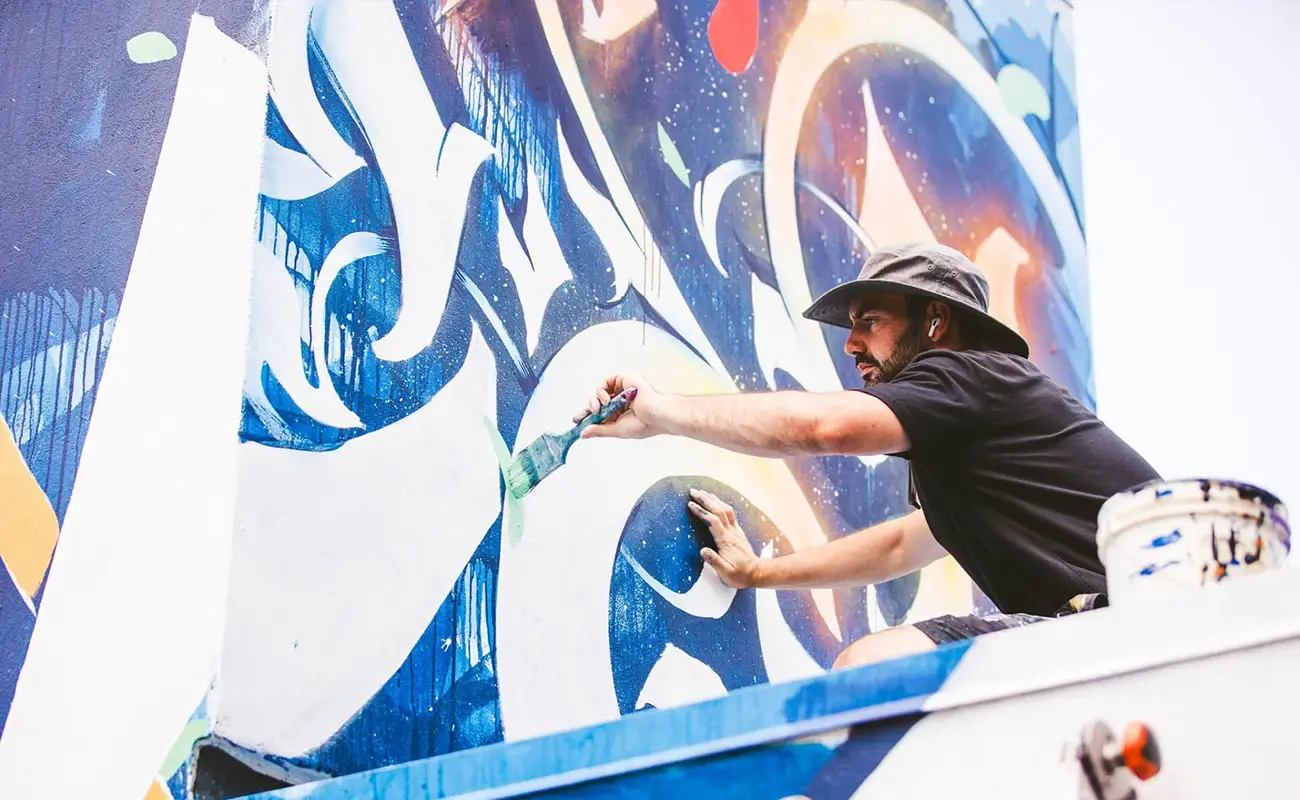 Leo’s collaborations reflect this adaptability. He has worked with a wide range of clients, from commercial developers to art consultants, creating works that complement and elevate their surroundings. His murals and installations appear in tech campuses, hospitality settings, and public environments, each uniquely tailored to its context. With a refined sense of materiality and spatial awareness, Leo doesn’t impose his style onto a space — he listens to it. His work brings rhythm to architecture, infusing static surfaces with a pulse that resonates visually and emotionally. The result is not just decoration, but a dialogue between structure and spirit.