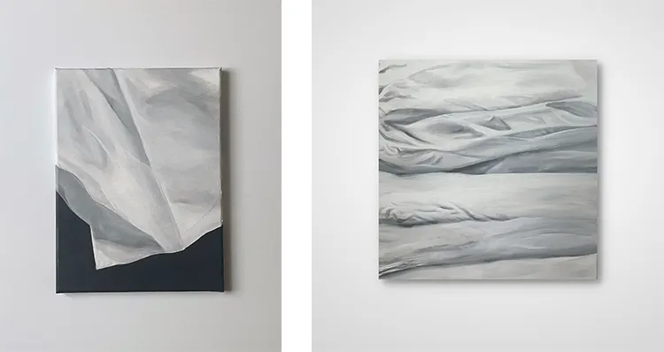 Petra’s artistic style is a dynamic interplay between figuration and abstraction, where she delves into themes that explore the human condition within our globalized, digital world. Her current work is a poetic series that exudes mystery, sensuality, and intimacy. This enigmatic collection features female anti-portraits and minimalist abstractions reminiscent of a baroque castle’s antechamber. Petra’s work challenges viewers to engage their imagination, leaving it up to them to interpret the subjects—be it a bed sheet, the fabric of Renaissance clothing, Venetian palazzo curtains, or even a crumpled love letter.