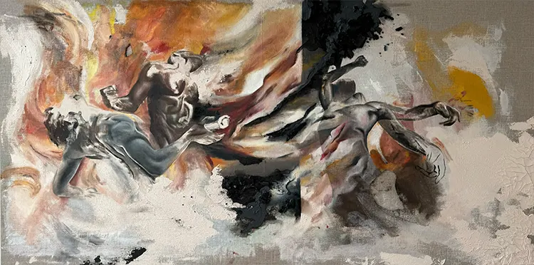 In its current state, Storey’s artwork exemplifies a harmonious blend of her foundational realism, often prominently displayed through figure studies, combined with unstructured, organic strokes. A recurring subject that captivates her is the intricate dance of our daily existence, aptly termed circadian discourse. This intrigue finds expression in her works, especially through the rich textures she creates using natural elements.