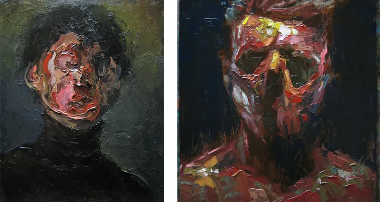 Pangborn’s improvisational style and self-reflective themes serve as a therapeutic outlet, enabling him to confront and manage his anxiety and depression. The physical act of painting, especially the tactile pleasure of working with thick layers of oil, brings him a profound sense of peace and fulfillment. Each completed piece represents an exorcism of sorts, a way to purge his inner demons and achieve a sense of lightness and clarity. This therapeutic process not only enhances his well-being but also resonates deeply with viewers who see their struggles reflected in his art.
