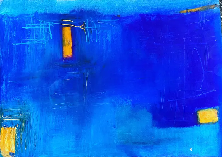 “I make intuitive abstract art. What propels me forward is the process itself, the lack of pre designed outcome. This is so very different from my… training as a lawyer.”