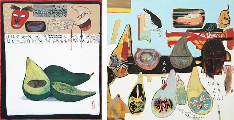 Despite the density of his compositions, Foucaud often employs a flat illustrative style that conceals intricate layering beneath. His colors lean toward the organic—earthy browns, muted greens—interrupted by bursts of acidic vibrancy. This creates a tension between surface simplicity and underlying complexity, encouraging the viewer to look again and again. The tactile nature of his work—surfaces that resemble fabric, bark, or aged paper—contributes to its hybrid identity: part painting, part artifact, part poetic code. It’s within these contradictions that Foucaud’s artistic power truly resides.