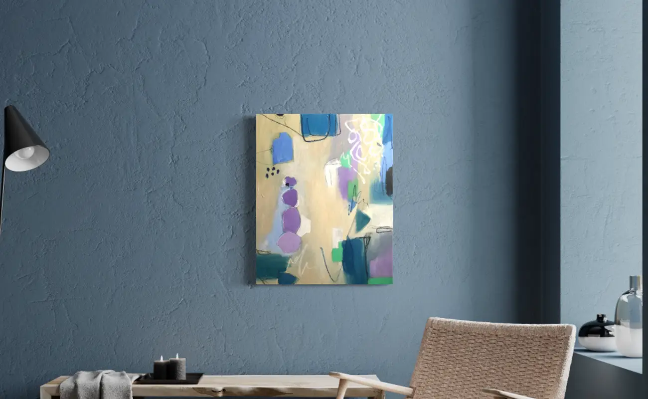 Poetry is not separate from her visual practice but intricately entwined. Sometimes the poem is the blueprint, establishing the emotional architecture from which a painting grows. Other times, the painting arrives first, and the poem follows like a whispered translation. This dialogic relationship between word and image defines her artistic voice. It allows her to say what can’t be fully expressed in one form alone. Each poem-painting pair becomes an act of translation — of feeling into form, of silence into speech, of interiority made visible.