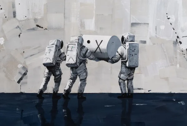 Each day in Gryshchenko’s studio begins not with a blank canvas, but with a head full of ideas. Her artistic life is grounded in daily practice — painting, reading, and engaging with the philosophical and mathematical theories that fuel her conceptual framework. She considers herself at the beginning of a much larger journey, one in which artistic maturity is measured not by mastery alone, but by an expanding understanding of complexity. This openness to continual learning keeps her work in motion, driven by curiosity and sustained by discipline. Painting is not separate from study in her world; it is the natural extension of inquiry, a means of testing theories through material form.