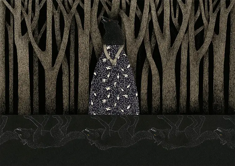 Participation in the global art scene has been a defining feature of Noor’s practice. Since 1978, she has contributed to more than 400 international exhibitions across over 30 countries, from Japan and Iran to the United States and France. With more than 90 solo exhibitions to her name, her presence has been especially strong in Estonia, but has extended through Northern and Eastern Europe. These extensive engagements have not only broadened her artistic exposure but also affirmed her status as a central figure in contemporary illustration. Her work regularly features in events like the Biennale of Illustrations Bratislava and the Golden Pen of Belgrade, and thematic exhibitions such as “It’s Always Tea-Time” and “Running with the Wolves,” each testament to her unique visual storytelling.