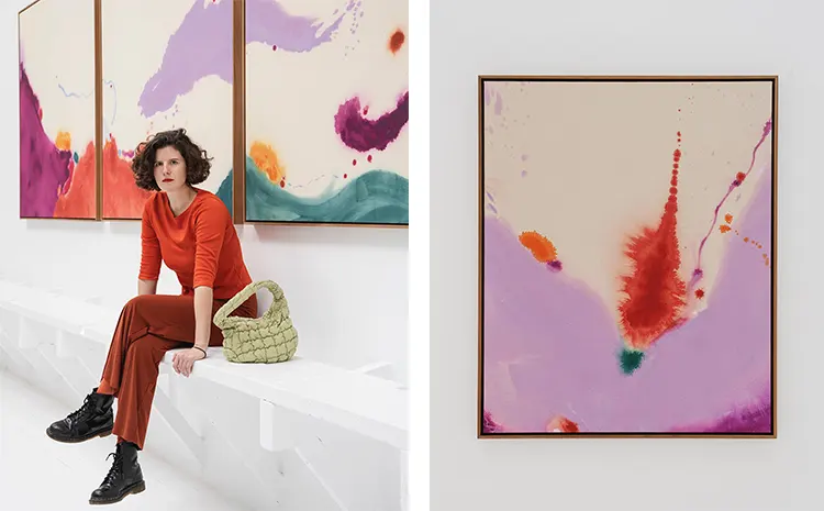 Violeta Maya’s creative process is a delicate dance between meticulous planning and embracing the unpredictable. This balance is especially crucial given the impact of external elements like humidity and temperature on her work. Maya approaches her art with a philosophy akin to navigating life: a practice in trust and acceptance of the uncontrollable. This mindset not only defines her artistic process but also enriches it, allowing each painting to evolve in its own unique way. The watery nature of her paint further accentuates this interplay, often leading to spontaneous and surprising outcomes that keep her artistic journey fresh and exciting.