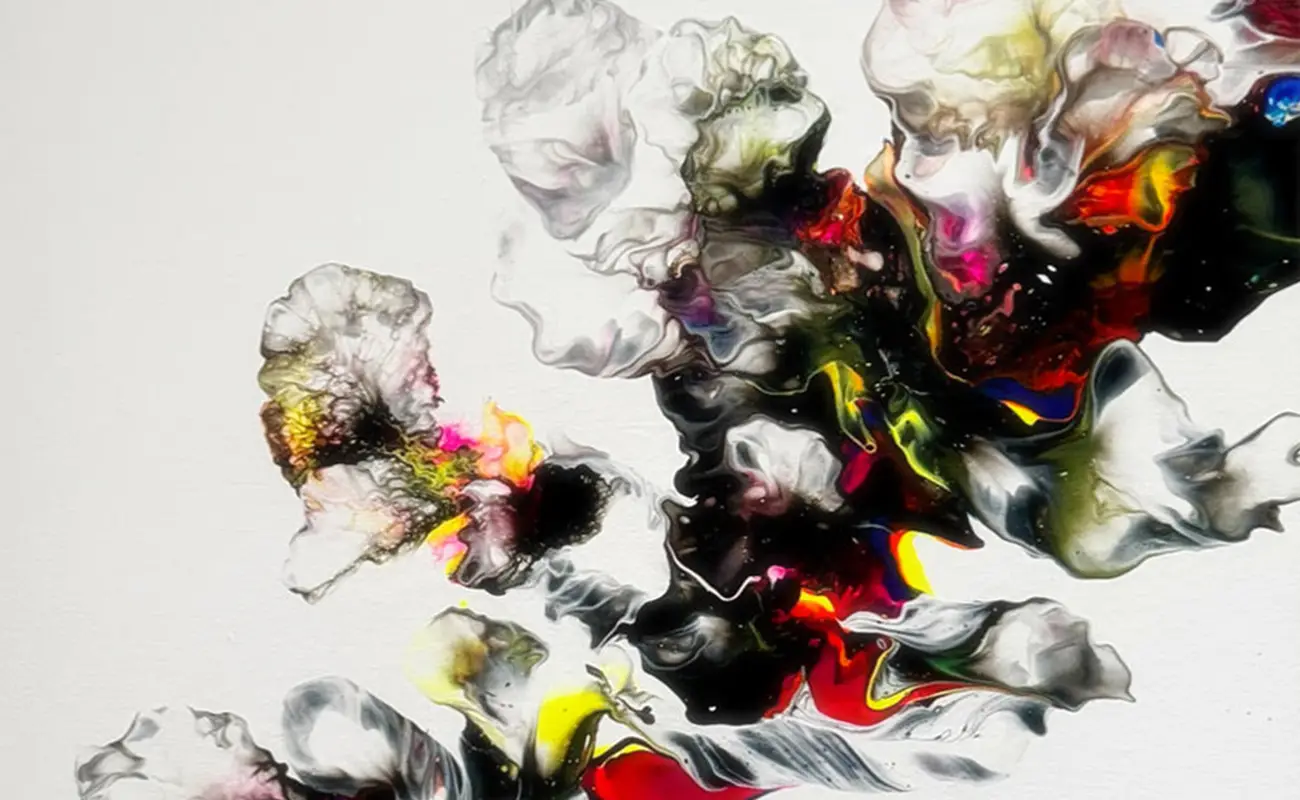 One recent work, painted on a white background using both luminous acrylics and contrasting darker tones, serves as a visual manifesto for his style. The composition emphasizes high movement and flow, embodying the chaos-meets-balance philosophy that defines his approach. For Sobh, this piece holds special meaning. It demonstrates how art can reflect the push and pull of life itself—the serenity found in disorder, the clarity discovered through unpredictability. This sense of tension, not only in form but in philosophy, underpins much of what makes his work resonate.