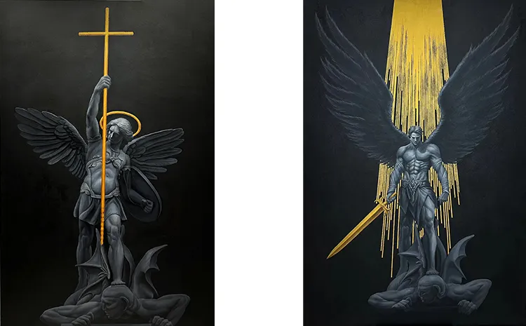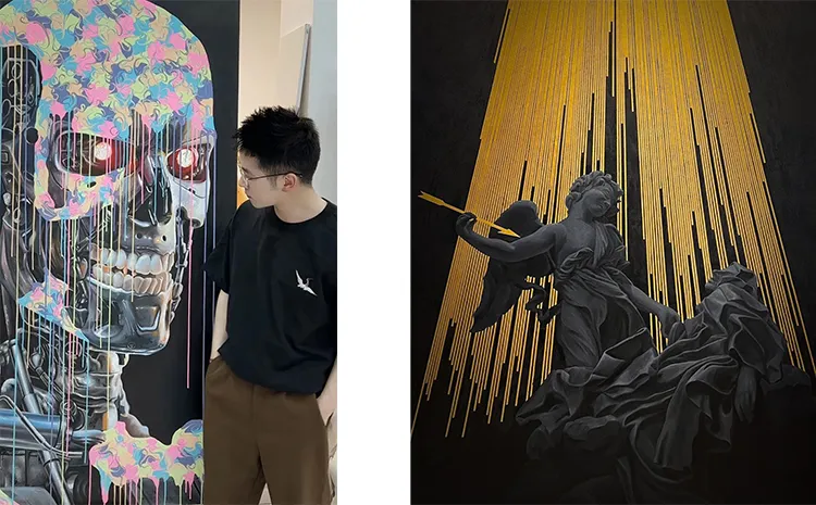 Looking ahead, Yifan Zhang continues to push the boundaries of his art, always seeking new ways to explore the conflicts and contrasts that define his work. His future plans include creating larger compositions that allow for more dynamic interactions between light, shadow, and the symbolic gold elements that have become a hallmark of his style. Zhang is also interested in incorporating new materials into his work, potentially introducing even more layers of complexity to his process and deepening the viewer’s engagement with the art.