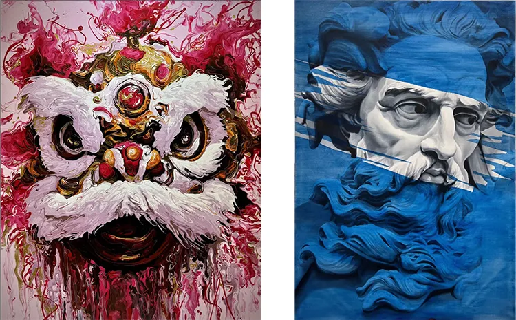 Conflict, for Yifan Zhang, is not something to be resolved but rather explored. His series, “Fault Art,” encapsulates this idea by examining the tension between Eastern and Western cultures. Zhang’s art is not merely about blending styles; it is a deliberate juxtaposition of opposing perspectives, ideas, and traditions. This thematic conflict is present in both the visual elements of his work and in the underlying messages they convey. Through this tension, Zhang invites his audience to engage with the complexity of cultural identity in a globalized world.